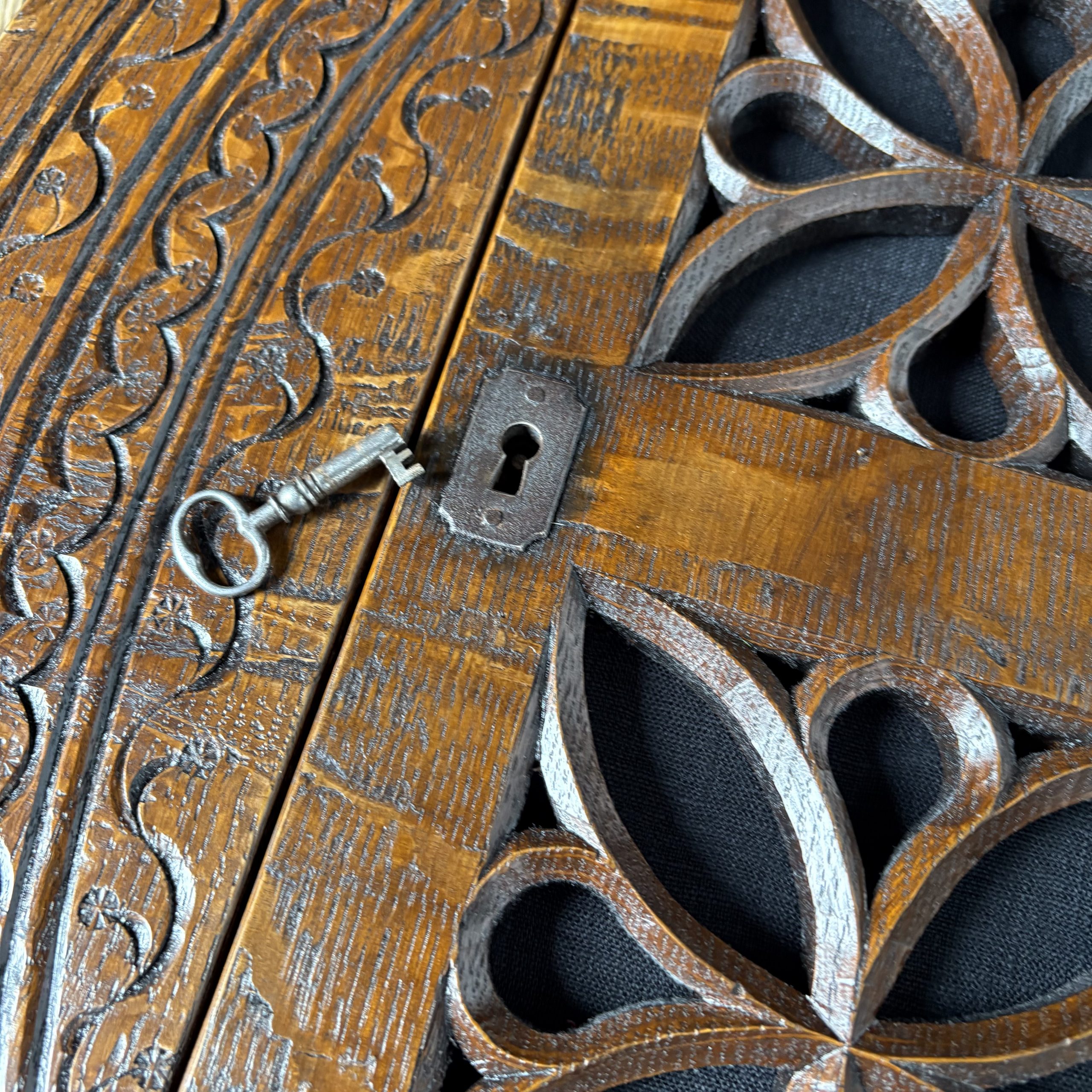 Mural cabinet detail Published May 4, 2025 at 2560 × 2560 in Buy it Now (Boxes) Detail of lock and key